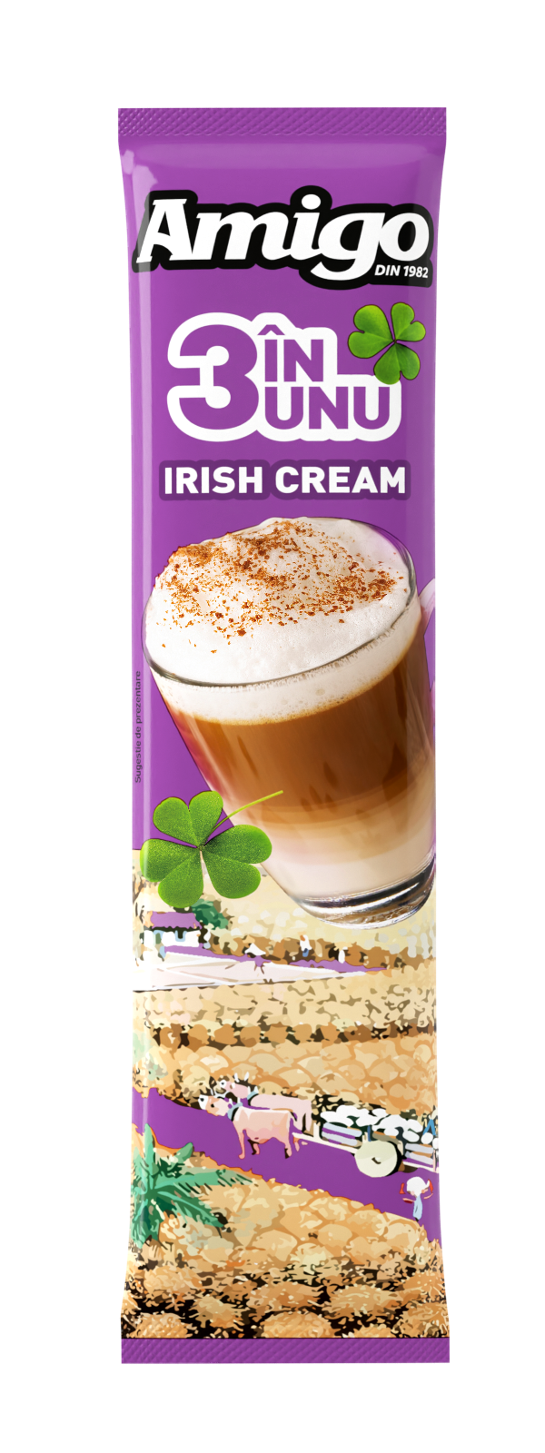 Răsfață-te cu o ceașcă de AMIGO 3in1 Irish Cream și experimentează gustul distinctiv al Irish Cream într-o cafea instant ușor de preparat!