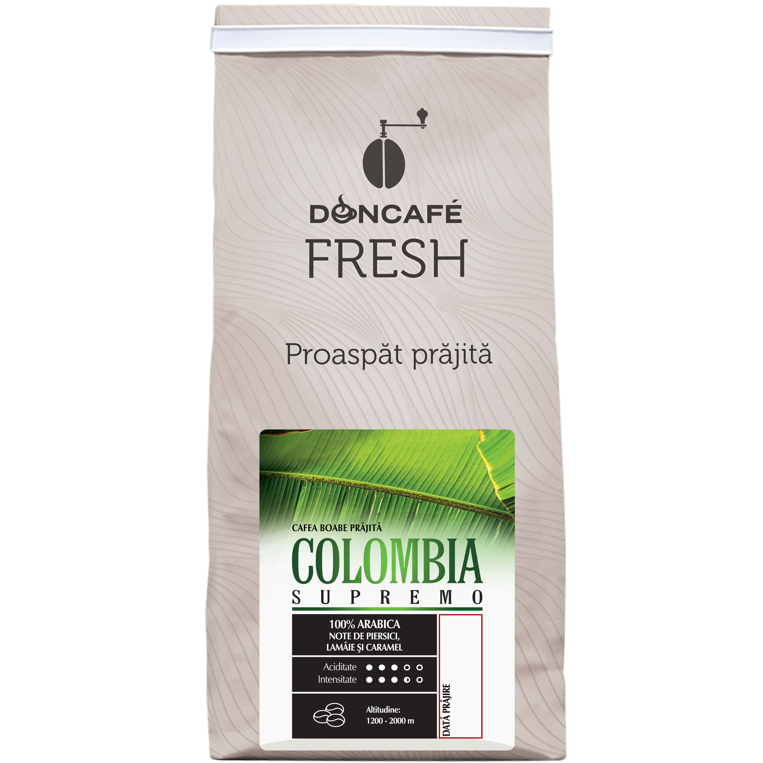Comandă Acum: Bucură-te de o cafea complexă și rafinată cu DONCAFE Fresh Colombia Supremo Cafea Boabe 250g. Savurează aromele bogate de piersici, lămâie și caramel într-o cafea de intensitate perfect echilibrată. Comandă acum și transformă fiecare ceașcă într-o experiență de neuitat!