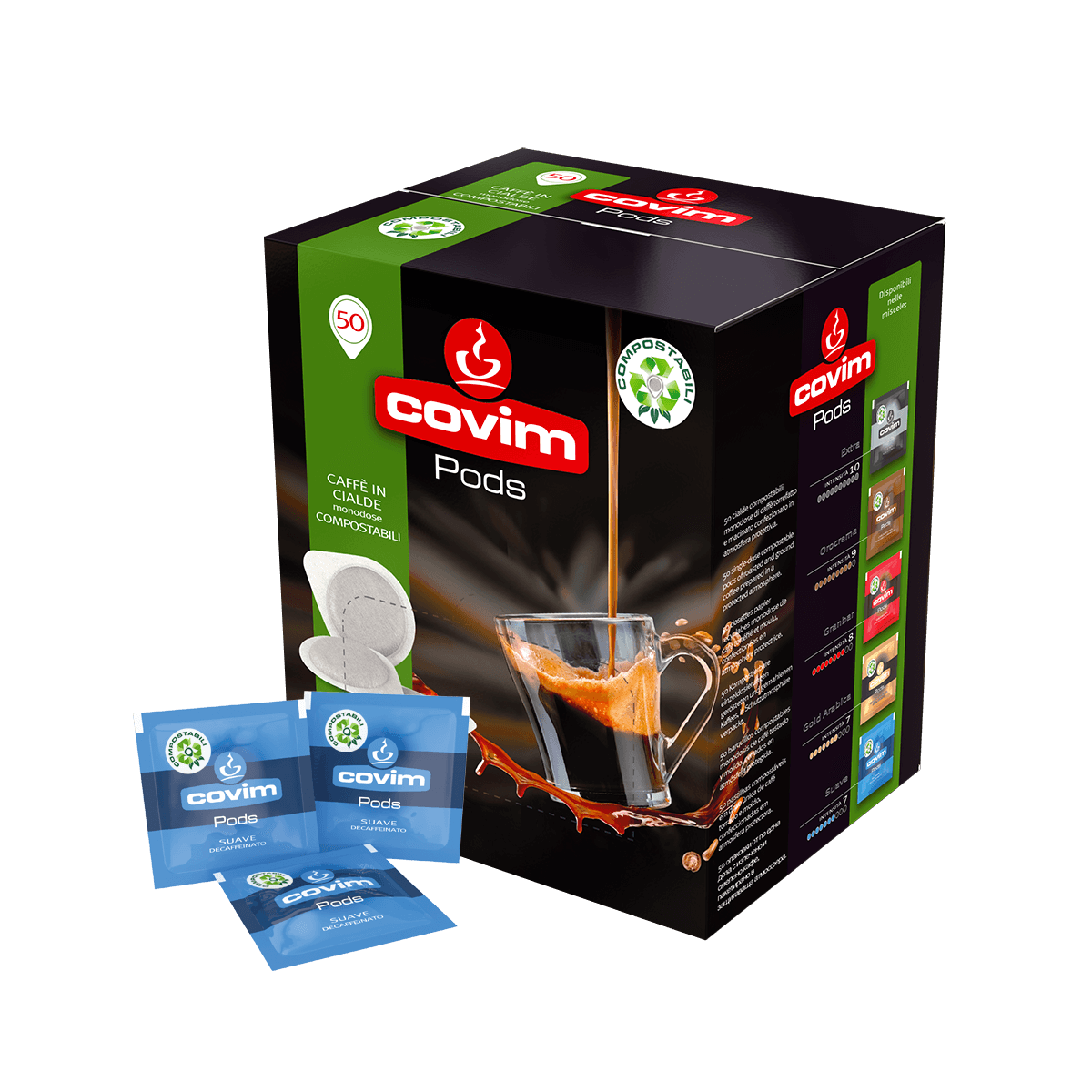 Ambalajul de 50 de monodoze ESE face acest sortiment potrivit pentru utilizarea atât acasă, cât și în medii profesionale, în aparatele de espresso compatibile cu acest format. Covim Suave Decaffeinato 50 monodoze ESE reprezintă alegerea perfectă pentru cei care doresc să se bucure de autenticitatea și calitatea unei cafele decaf într-un mod practic și convenabil. Savurează fiecare ceașcă de Covim Suave Decaffeinato, bucurându-te de senzația autentică a cafelei, fără stimulentul cofeinei.