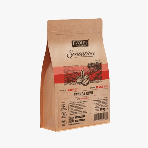 Evolet Cafea Origini Rwanda Kivu - 200g: Cafea boabe 100% Arabica, cu arome vibrante de fructe tropicale și aciditate vivace. Ideală pentru espresso sau filtru.