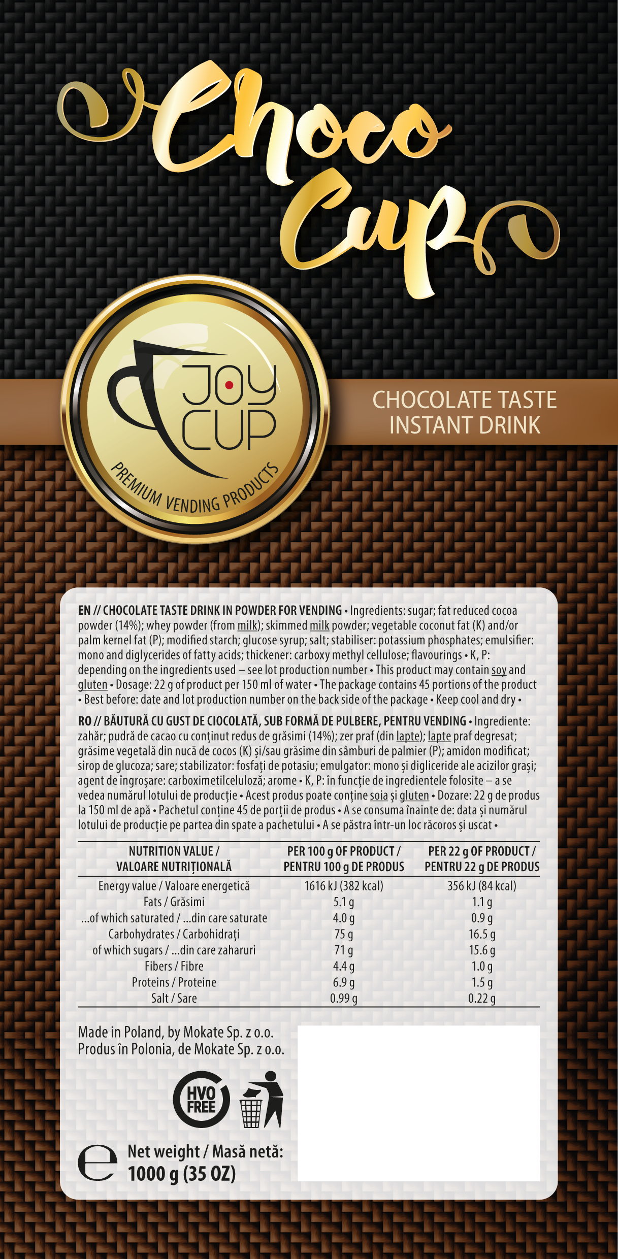 Joy Cup Ciocolata instant 1 kg Cod: 9299