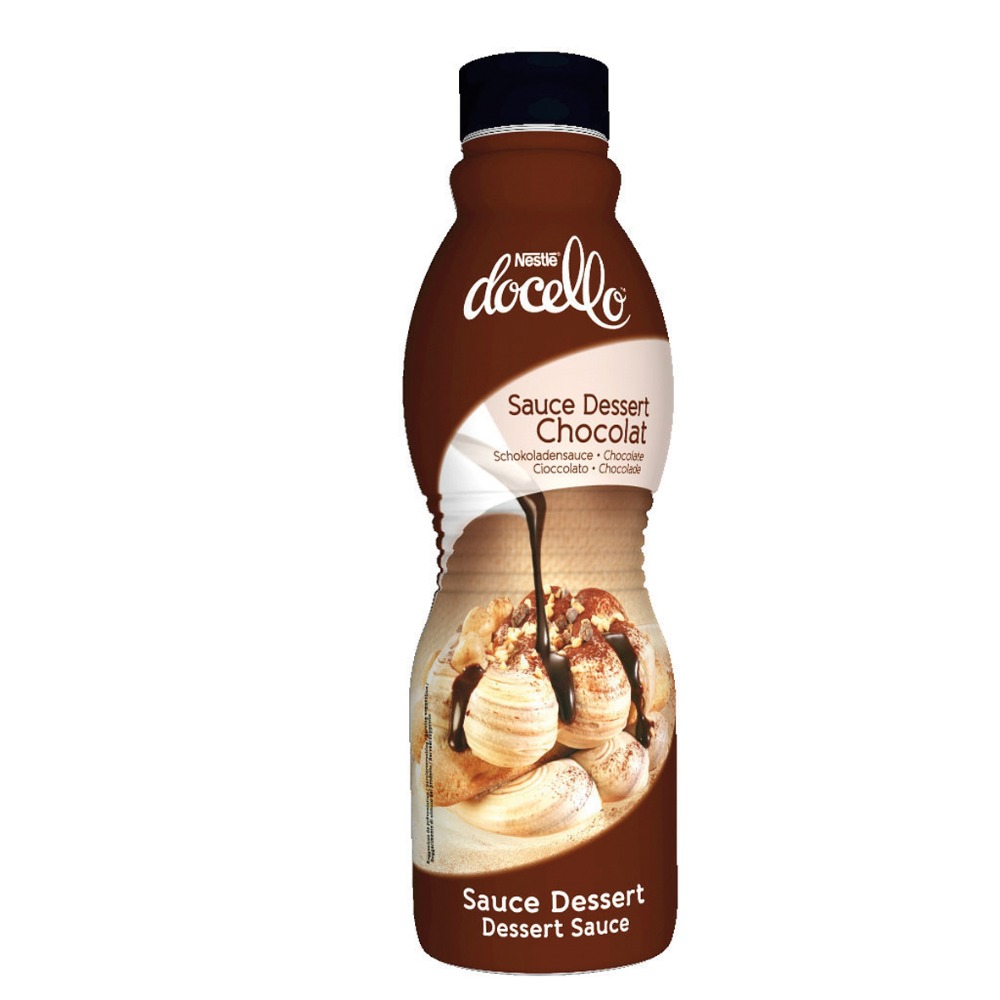 Răsfață-ți simțurile cu NESTLÉ Docello Sos Ciocolată, un sos cremos și decadent, creat pentru a aduce o notă sofisticată deserturilor tale