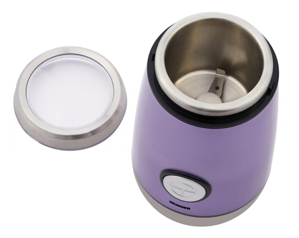 Râșnița electrică HEINNER HCG-150MOV oferă o măcinare rapidă și uniformă, având lame din inox și o capacitate de 150g, într-un design modern și compact.