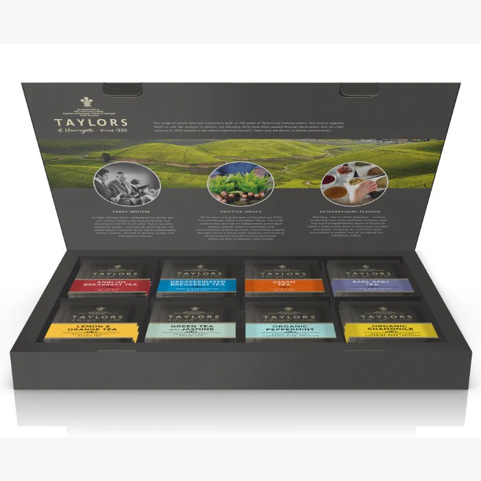 Cutie pentru servit ceaiul cu 8 compartimente a cate 6 pliculete de ceai, din fiecare sortiment (48 pliculete):