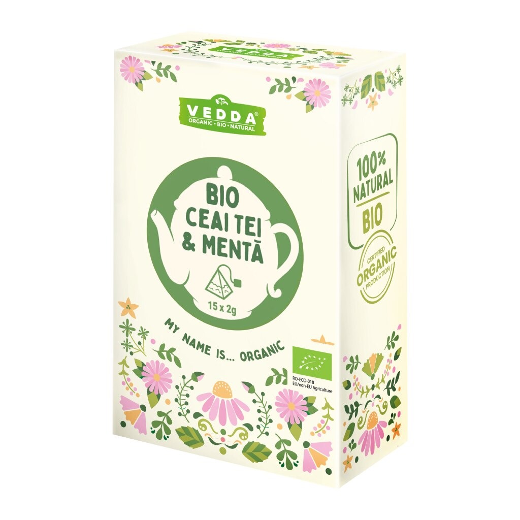 Vedda Ceai BIO Mentă Bio Piramidă - 15x2g aduce o experiență răcoritoare și revitalizantă cu fiecare ceașcă. Acest ceai organic din frunze de mentă, cunoscut pentru proprietățile sale digestive și de calmare, este perfect pentru a adăuga un strop de prospețime în rutina ta zilnică. Ideal pentru momente de relaxare sau ca un ajutor natural împotriva disconfortului gastric, Vedda Ceai BIO Mentă îți va transforma fiecare pauză într-un moment de plăcere.